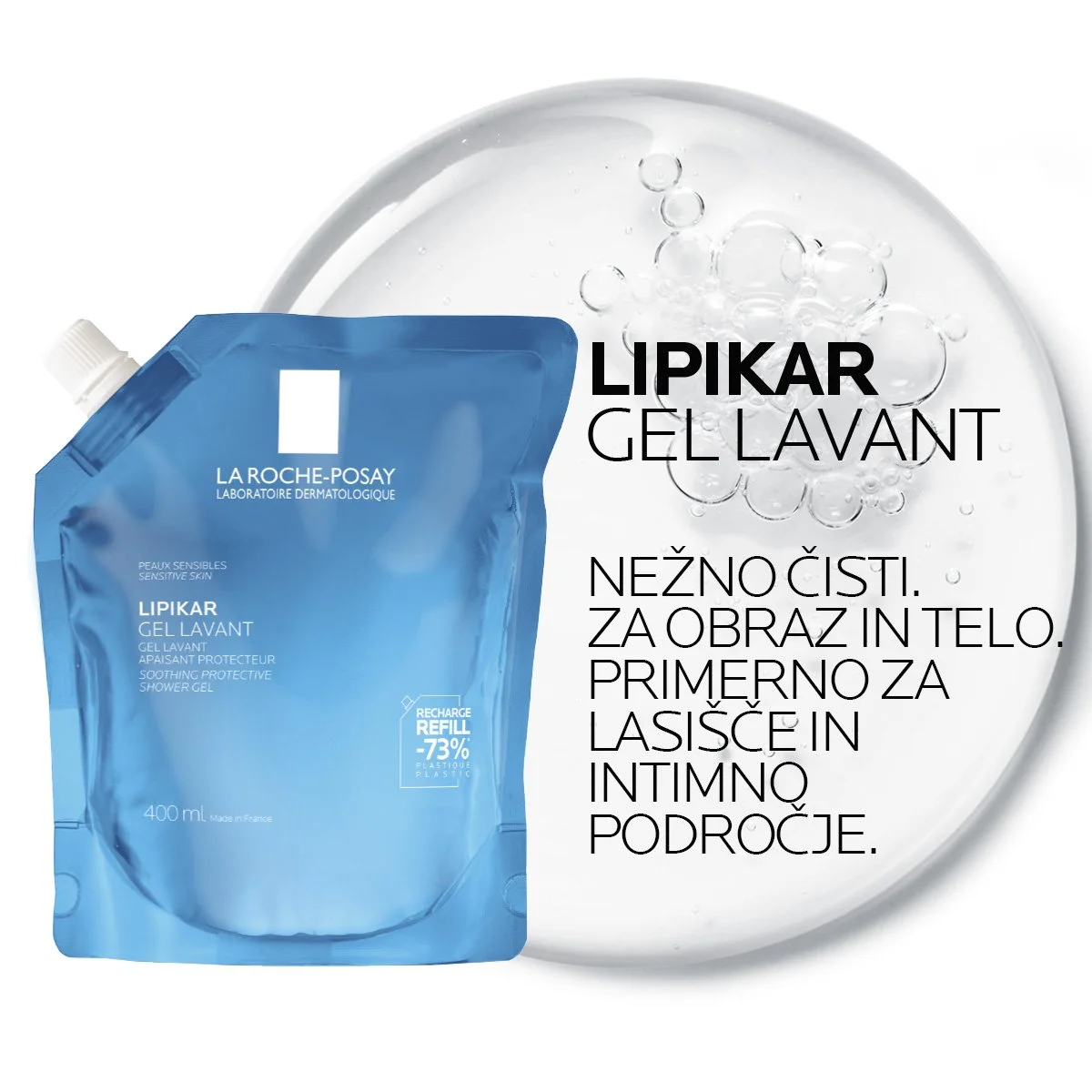 La Roche-Posay, Lipikar gel za prhanje za občutljivo in suho kožo, refill, 400 ml