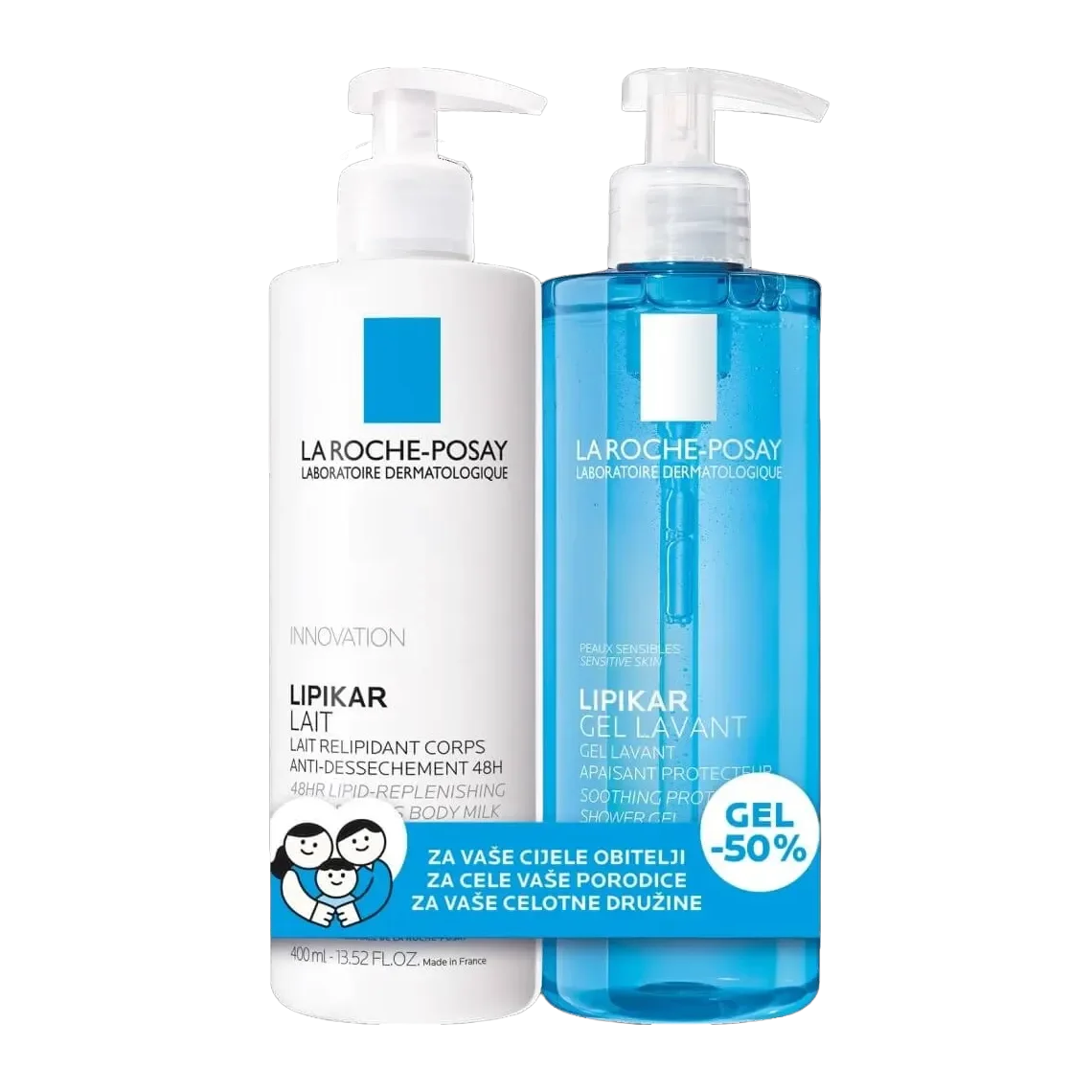La Roche-Posay, Lipikar Lait mleko za telo, 400 ml + Lipikar Gel Lavant, 400 ml