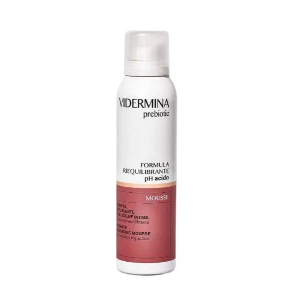 Vidermina Prebiotic čistilna pena je namenjena vsakodnevnemu umivanju ženskih intimnih predelov. Zasnovana je s pH vrednostjo med 3,0 in 3,5, kar ohranja optimalno ravnovesje vaginalne sluznice. Obogatena je s prebiotiki, mlečno kislino in pantenolom, kar pomaga pri vzpostavitvi in ohranjanju zdrave mikrobiološke flore ter ščiti pred ponavljajočimi se vnetji, kot so vaginitisi in vaginoze. Izdelek je primeren tudi med nosečnostjo in dojenjem.