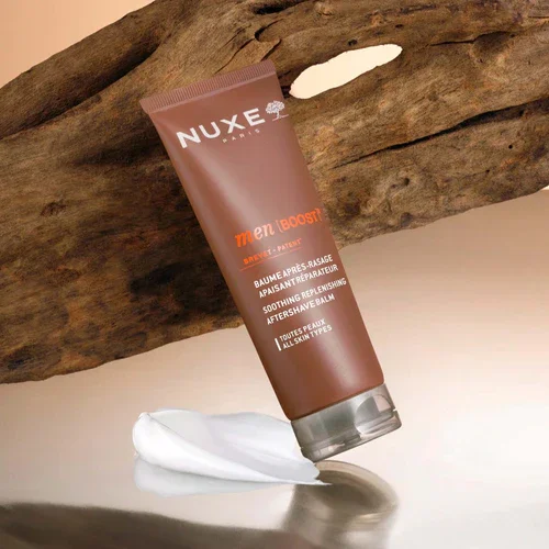 Nuxe Men Boost balzam po britju je pomirjujoči in obnovitveni balzam, namenjen negi kože po britju. Del strokovne linije NUXE Men [BOOST]³, ki združuje učinkovitost in čutnost ter kožo vsak dan ohranja navlaženo, sijočo in zaščiteno pred zunanjimi vplivi.