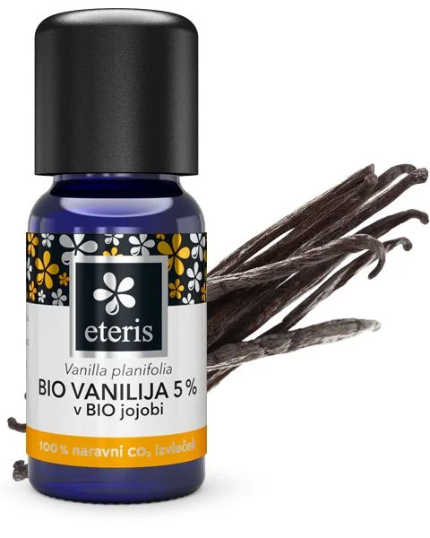 Favn BIO vanilija 5% CO2 izvleček v BIO jojobi je 100-odstotno naravni izvleček, pridobljen s superkritičnim CO2, kar omogoča pridobitev bolj koncentriranega vanilina v primerjavi z izvlečki, pridobljenimi z organskim topilom. Primeren je za uporabo v aromaterapiji, parfumeriji in naravni kozmetiki, v izdelkih za nego kože, losjonih, šamponih in serumih. V mešanici se dobro ujame z eteričnimi olji citrusov ter z lesnimi, cvetličnimi in začimbnimi vonji.