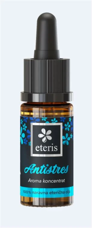 Favn Eteris Antistres aroma koncentrat je 100-odstotno naravna mešanica eteričnih olj bosvelije, bergamotke, baldrijana, sivke in bio ilang-ilanga, raztopljenih v denaturiranem alkoholu. Vsa ta eterična olja imajo certifikat Aromacert Essence ter certifikata Naravna kozmetika ali Ekološka kozmetika, ki ju podeljuje IKC UM. Mešanica je zasnovana za uporabo v stresnih in napornih obdobjih, saj s svojo aromo podpira občutke umiritve, sprostitve in notranjega ravnovesja. Aroma koncentrat je primeren za uporabo v difuzorjih ali kopelih. Polnjen je v stekleničko s priloženo kapalko, ki omogoča lažje in natančnejše odmerjanje.