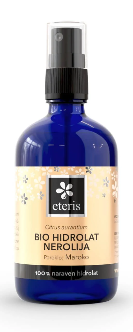 BIO hidrolat nerolija pomirja in tonizira kožo ter spodbuja njeno obnovo.