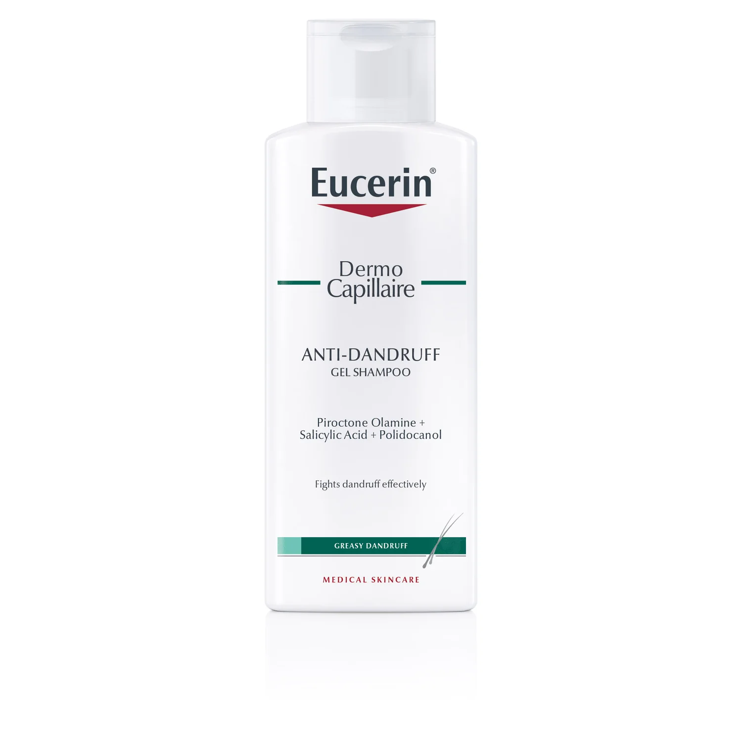 Eucerin DermoCapillaire šampon proti mastnemu prhljaju je zasnovan za lase in lasišče, ki trpi zaradi mastnega prhljaja in seboroičnega dermatitisa. Šampon nežno očisti lasišče, odstrani rumene luske ter učinkovito zmanjša in uravnava prhljaj. Njegova blaga formula pomiri lasišče, zmanjša srbečico in zagotavlja zdrave, sijoče ter mehke lase. Primeren je za vsakodnevno uporabo pri mastnem prhljaju in prekomernem nastajanju loja.