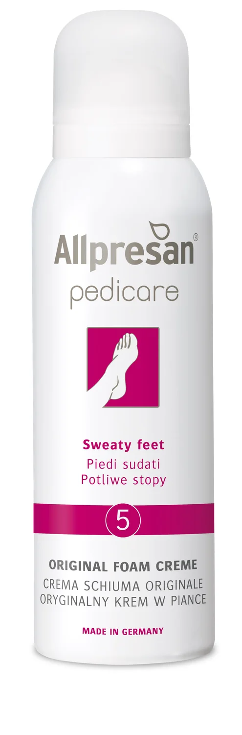 Allpresan 5 kremna pena za noge je osvežujoč sprej, zasnovan posebej za nego nog, ki se prekomerno potijo in so nagnjene k neprijetnemu vonju. Vsebuje naravne sestavine, kot sta olje čajevca in mentol, ki nudijo hlajenje in svežino, hkrati pa poskrbijo za dolgo obstojno zaščito proti neprijetnim vonjavam. S tem izdelkom lahko učinkovito osvežite noge in kožo nog obdržite suho in svežo skozi ves dan.