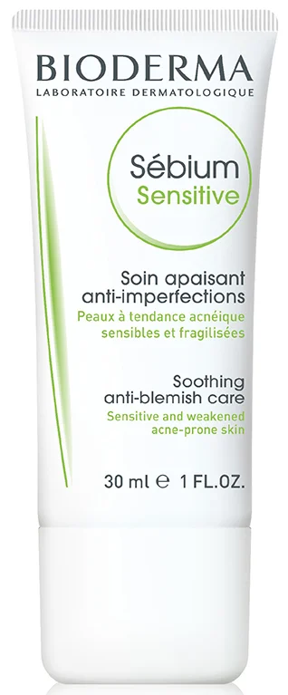 Bioderma, Sebium Sensitive, pomirjujoča nega za občutljivo, k aknam nagnjeno kožo, 30 ml