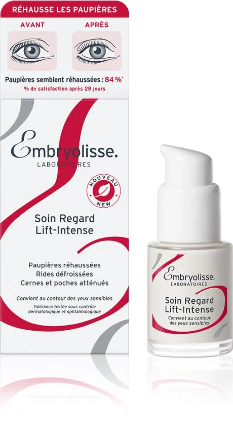 Embryolisse intenzivna učvrščevalna krema za okoli oči neguje gube, temne kolobarje in vrečke ter zapolni gube okoli oči, kar koži zagotovi gladkost in mladosten videz. Njena formula z učinkom liftinga dvigne veke in koži okoli oči povrne vitalnost, svežino ter izboljša njen videz. Krema zmanjšuje otekline in temne kolobarje, gladi linije in daje koži okoli oči sijoč ter spočit videz.