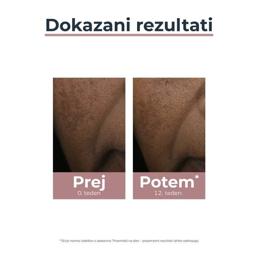 Korektor vsebuje thiamidol, ki zmanjšuje hiperpigmentacijo in poenoti kožo. Prvi rezultati so vidni po dveh tednih uporabe.