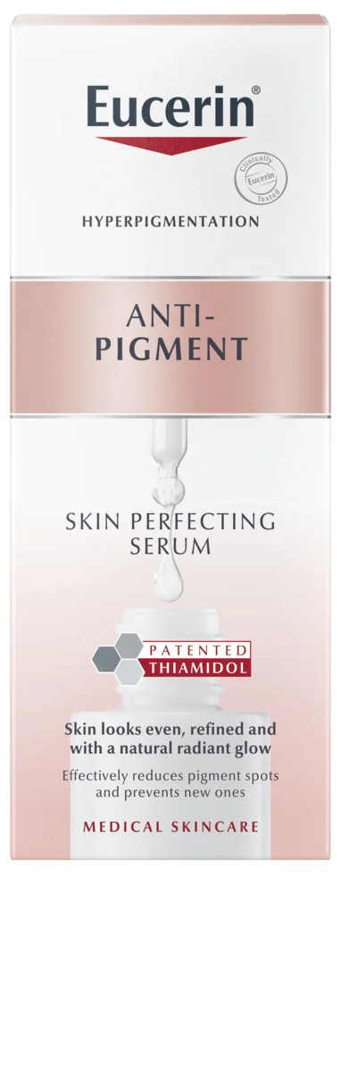 Eucerin Anti-Pigment je izdelek, zasnovan za zmanjšanje hiperpigmentacije in izboljšanje splošnega videza kože. Serum vsebuje kombinacijo aktivnih sestavin, ki se med seboj dopolnjujejo, da bi kar najbolje izboljšale videz kože. Zaradi tehnologije kristalov je izredno lahke teksture in je primeren za vse tipe kože.