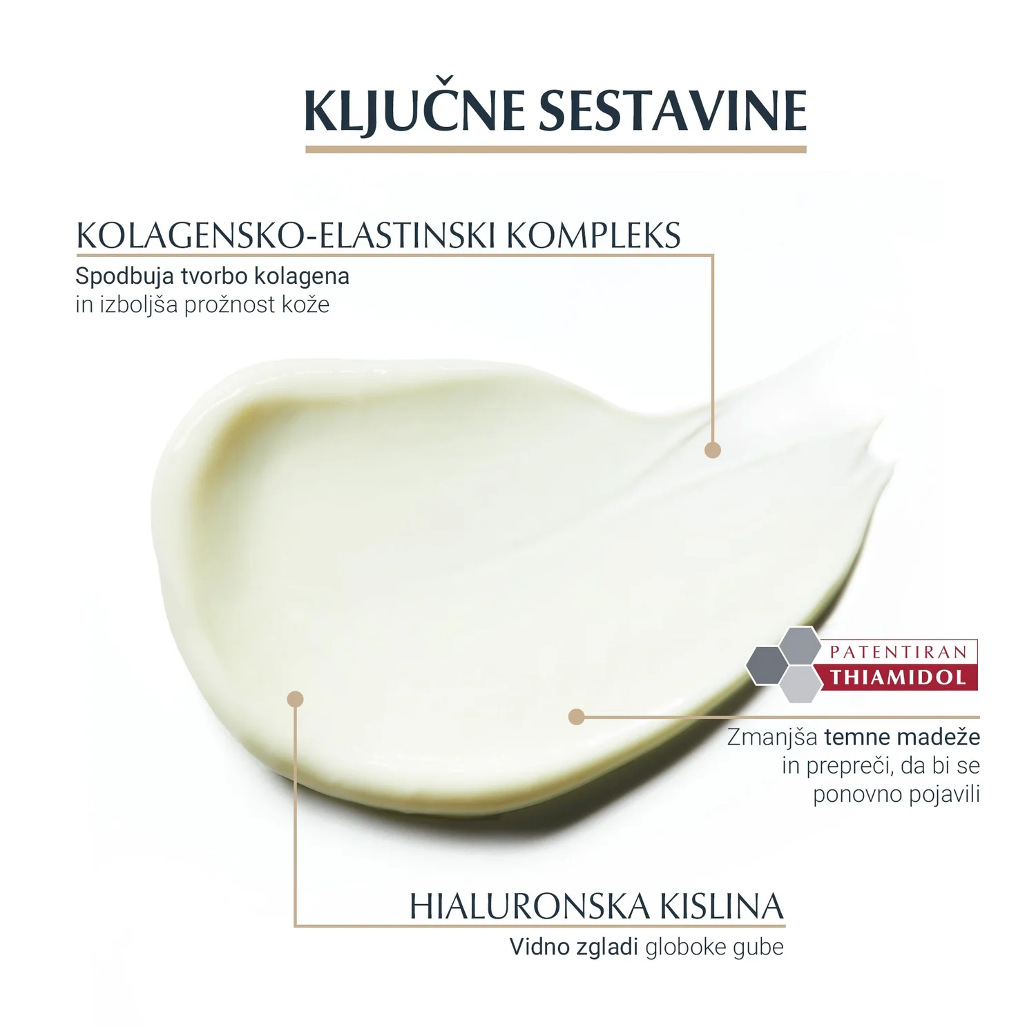 - Thiamidol je sestavina, ki jo je patentiral Eucerin. V desetih letih razvoja linije se je pokazalo, da ta visoko učinkovita sestavina klinično in dermatološko potrjeno zmanjša temne madeže in preprečuje njihov ponovni pojav.