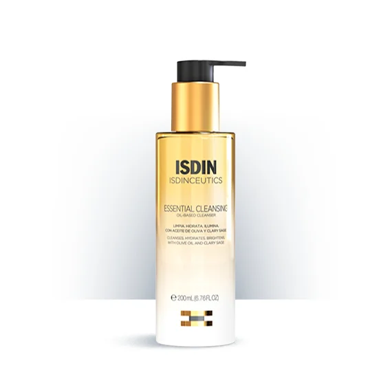 Isdin Isdinceutics Essential oljni čistilec za obraz je namenjen globinskemu čiščenju obraza, vek in trepalnic ter odstranjevanju ličil, izdelkov za zaščito pred soncem, delcev onesnaženja in odvečnega sebumu. Njegova lahka in nežna formula se ob stiku z vodo spremeni v prijetno emulzijo, ki na koži po spiranju ne pušča sledi, ohranja kožo navlaženo in spodbuja njen sijoč videz.