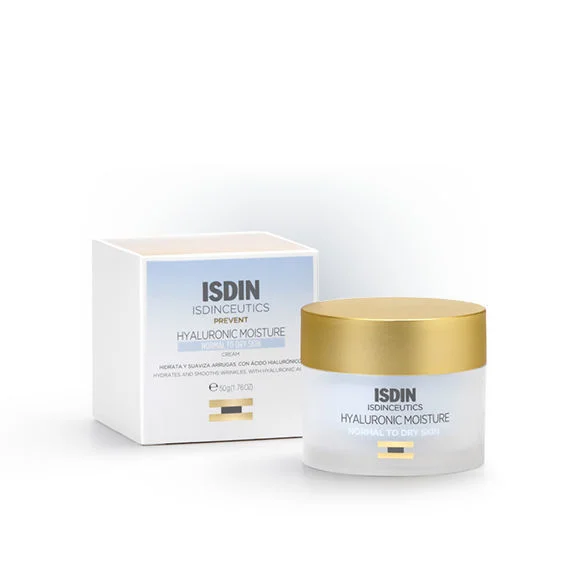 Isdin Isdinceutics Prevent Hialuronska vlažilna krema za normalno do suho kožo je lahka, hitro vpojna negovalna krema za obraz, namenjena globinskemu vlaženju in zaščiti pred onesnaženjem. Formulirana s kompleksom Tri-Moisture, ki pomaga preprečevati in zmanjševati prve znake staranja ter spodbuja gladko in sijočo polt. Primerna je tudi za občutljivo in k rdečici nagnjeno kožo, saj pomaga pomiriti rdečico. Po uporabi je koža revitalizirana, mehka in sijoča.