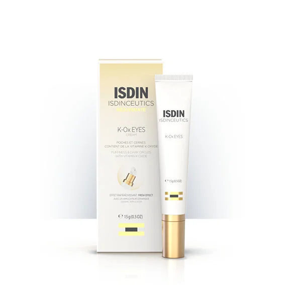 Isdin Isdinceutics Rejuvenate K-Ox krema za predel oči s keramičnim aplikatorjem je namenjena zmanjševanju zabuhlosti in postopnemu odpravljanju videza temnih kolobarjev okoli oči. Poleg tega krema vrača koži elastičnost, jo vlaži ter zmanjšuje vidnost gub. Izdelek je dermatološko in oftalmološko testiran.