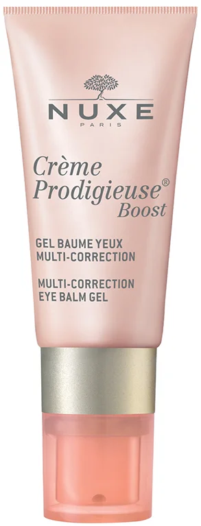 Nuxe creme prodigieuse boost multikorekcijski gel balzam za predel okoli oči je lahka in osvežujoča formula, namenjena negi občutljive kože okoli oči. Ta gel balzam zmanjša videz temnih kolobarjev, zabuhlosti in gub, hkrati pa kožo okoli oči nahrani in jo osveži. Ponuja multikorekcijski učinek, ki pomaga v boju proti znakom utrujenosti in staranja.