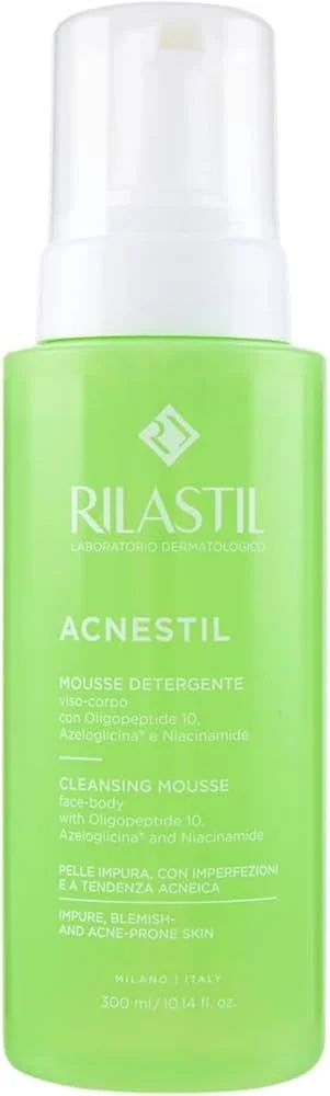 Rilastil Acnestil čistilna pena je nežna in puhasta pena za vsakodnevno čiščenje kože, nagnjene k aknam. Namenjena je mastni, mešani in problematični koži z nepravilnostmi.