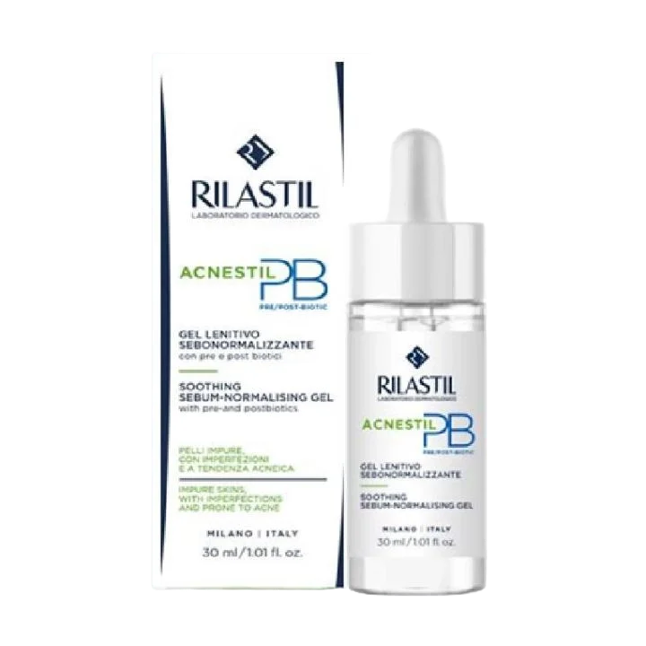 Rilastil Acnestil PB gel je pomirjevalni gel, ki pomaga normalizirati izločanje sebuma na koži, nagnjeni k aknam. Z vsebnostjo prebiotikov in postbiotikov deluje proti rdečici, zmanjšuje mastnost kože ter obnovi njeno fiziološko hidracijo. Gel zagotavlja koži optimalno udobje in ima lahko teksturo, ki se hitro vpije. Namenjen je negi nečiste kože in izboljšanju njenega videza.
