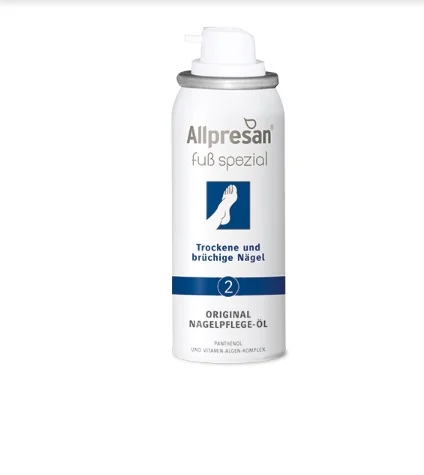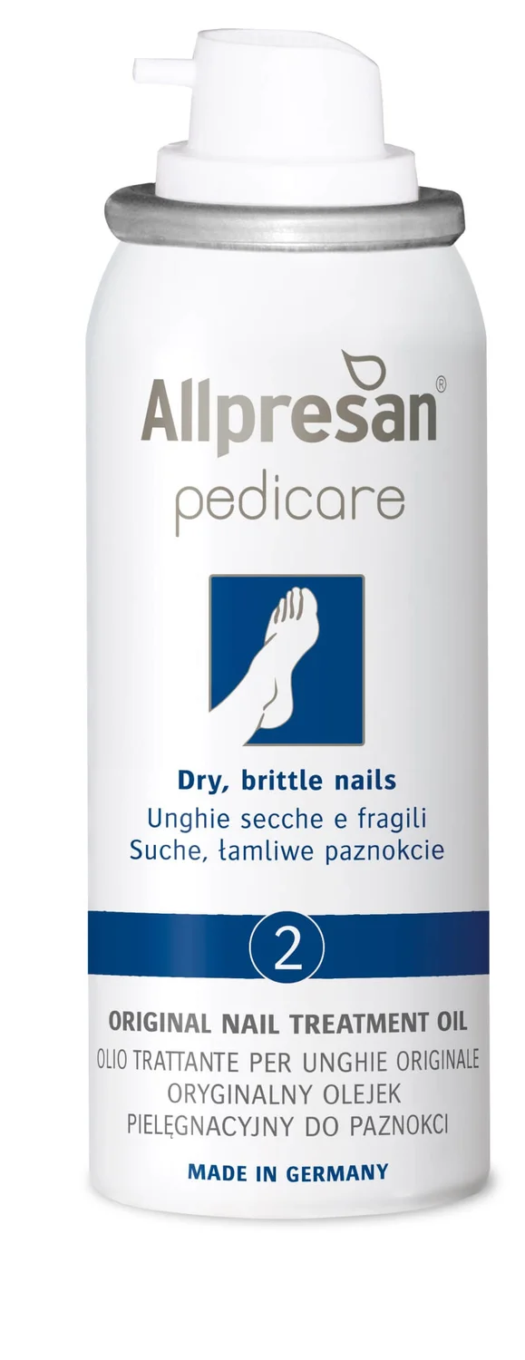 Allpresan 2 Pedicare je olje za nego močno obremenjenih in krhkih nohtov na nogah. Zasnovano je za vsakodnevno nego suhih, krhkih, razcepljenih in poškodovanih nohtov. Olje pomaga navlažiti in utrditi nohte ter izboljša njihov videz in strukturo. Izdelek ne vsebuje dišav in barvil, kar zmanjšuje tveganje za morebitne alergijske reakcije.Redna uporaba olja pomaga preprečiti trganje in cepljenje nohtov ter spodbuja njihovo zdravje in elastičnost.