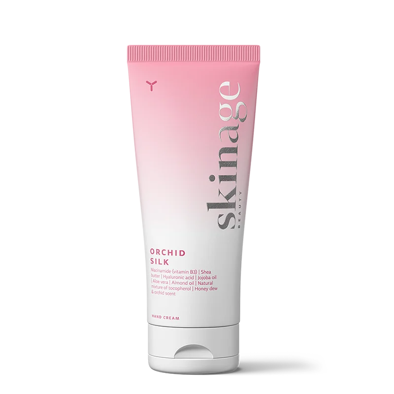 Yasenka, Skinage Beauty ORCHID SILK je nežna krema za roke s karitejevim maslom, jojobinim oljem, hialuronsko kislino in niacinamidom. Kožo intenzivno neguje, vlaži in ščiti pred izsušitvijo. Lahka formula se hitro vpije, ne pušča mastnega občutka in razvaja roke z nežnim vonjem orhideje.