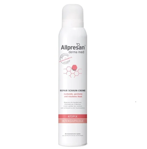 Allpresan Derma Med Atopix kremna pena je namenjen intenzivni negi kože, nagnjene k atopijskemu dermatitisu. Vsebuje biomimetične lipide, pantenol in ekstrakt glive bradovec, ki pomagajo pri obnavljanju kožne pregrade ter zmanjšujejo suhost in srbenje kože.