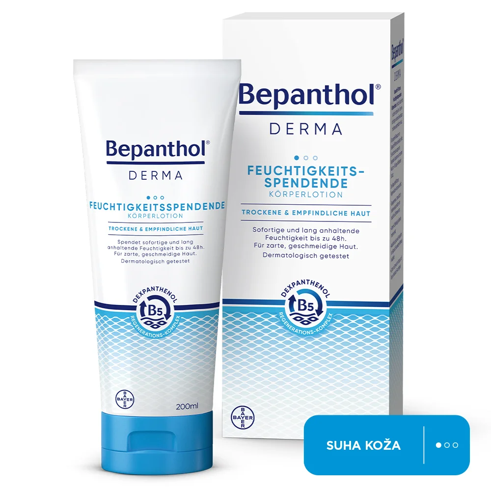 Bepanthol Derma vlažilni losjon za telo je izjemno lahka in nelepljiva formula, ki se hitro vpije in nudi koži takojšnje olajšanje. Njegova bogata sestava temelji na naravnih sestavinah in posebnem "Repair Complexu", ki koži zagotavlja dolgotrajno vlaženje in zaščito. Ta losjon je bil razvit za nego suhe in občutljive kože ter je primeren za vso družino, vključno z dojenčki, starejšimi od šestih mesecev. Poleg tega je primeren tudi za ljudi s sladkorno boleznijo, saj učinkovito obnavlja in vlaži kožo brez tveganja za draženje.