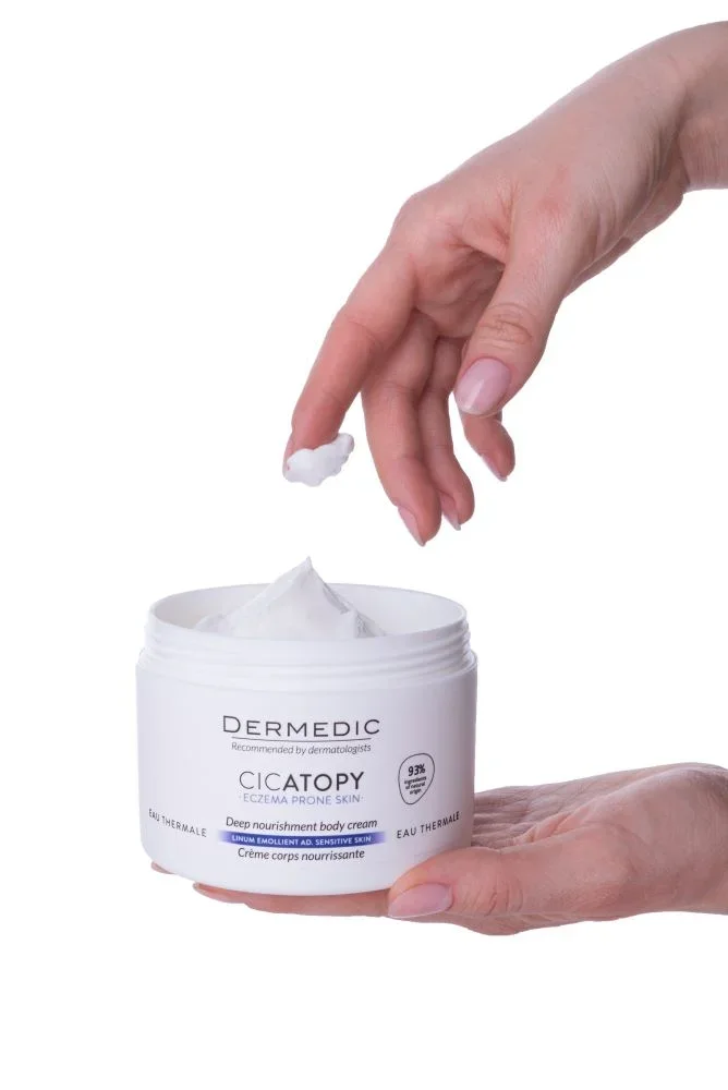 Dermedic Cicatopy globinsko hranilna krema je zasnovana za nego suhe, zelo suhe in atopične kože, vključno z ekcemi. Njena ultra bogata formula pomirja in zmanjšuje simptome kronično suhe in atopične kože, vključno s srbenjem. Obnavlja pravilno medcelično razmerje lipidov in kohezijo lipidne povrhnjice, ščiti pred dražilnimi zunanjimi dejavniki ter prodiranjem alergenov, bakterij in gliv.