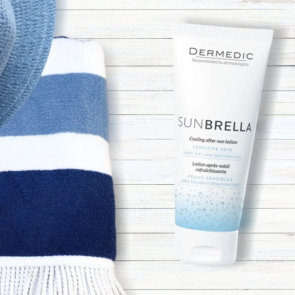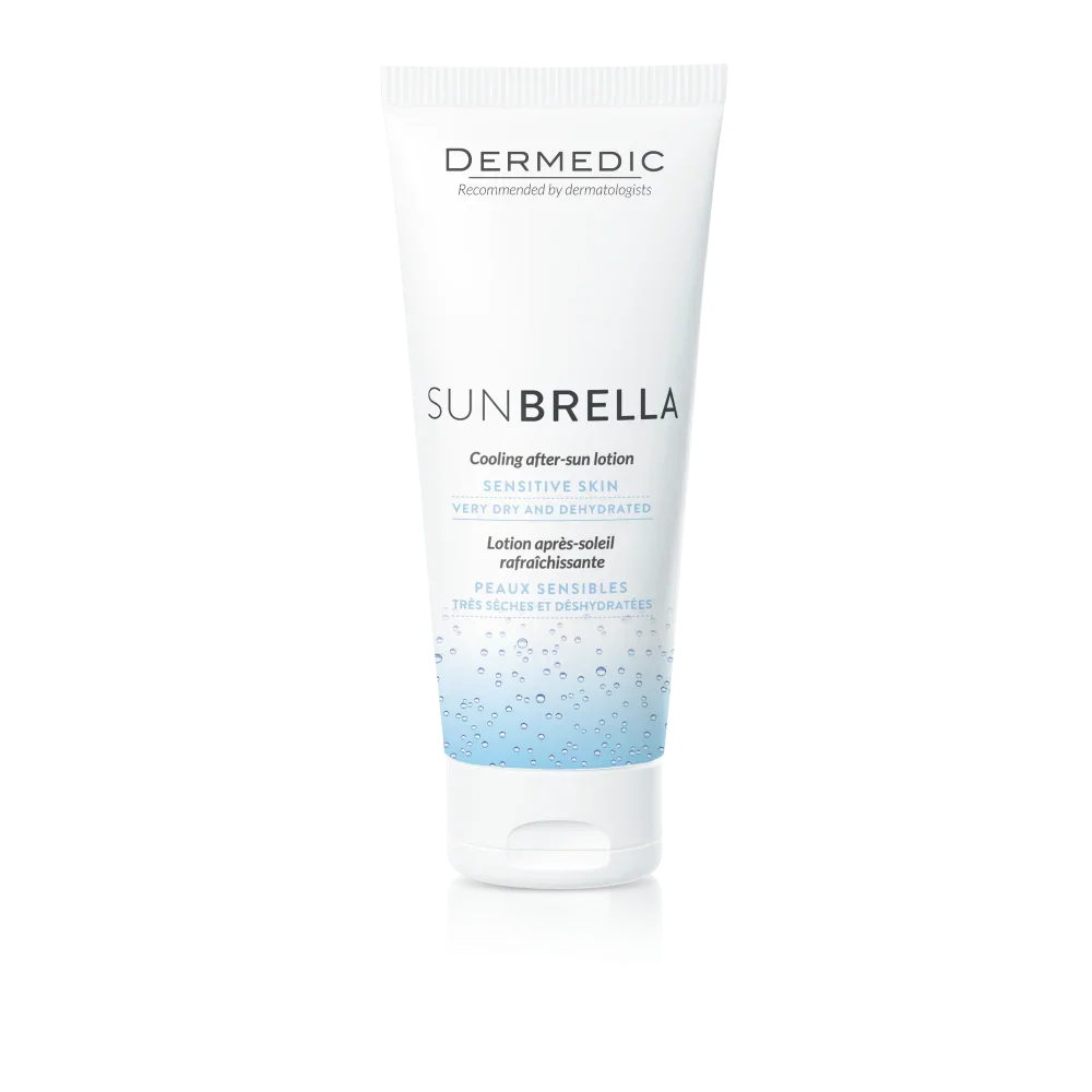 Dermedic Sunbrella hladilni losjon za po sončenju je intenzivna nega za občutljivo, suho in dehidrirano kožo po izpostavitvi soncu. Globinsko vlaži, zmanjšuje srbenje in obnavlja naravno kožno bariero.