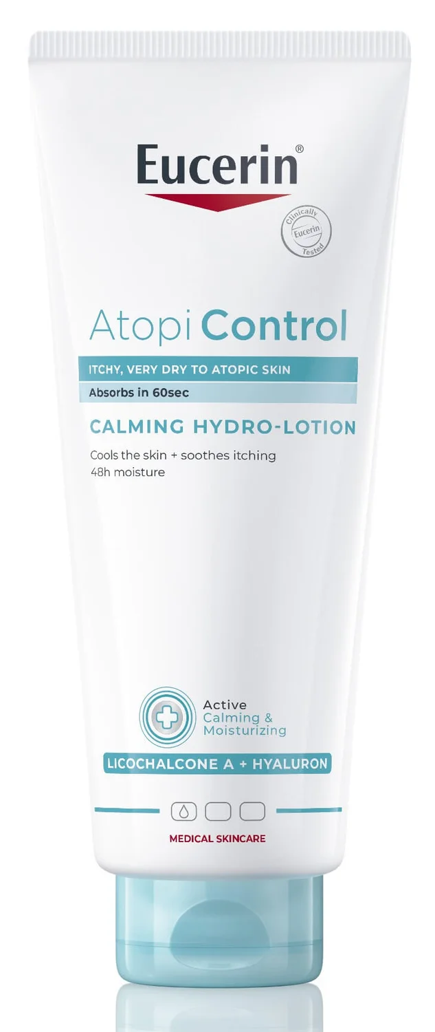 Eucerin AtopiControl pomirjajoči ultra lahki hidrolosjon je namenjen vsakodnevni negi zelo suhe in atopijske kože. Razdraženo in srbečo kožo intenzivno vlaži (do 48h), hladi in pomirja ter pomaga obnoviti njeno bariero. Formula je brez dišav, izjemno lahka, nelepljiva in se vpije v 60 sekundah, zato je primeren tudi za uporabo v poletnem času in na poraščenih predelih telesa. Po uporabi je koža na otip mehkejša in povrnjen je občutek udobja.