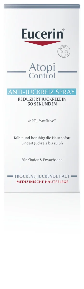 Eucerin AtopiControl sprej proti srbenju je zasnovan za takojšnjo in dolgotrajno ublažitev srbečice, ki je pogost simptom atopijskega dermatitisa, kseroze, psoriaze in diabetesa. Zasnovan je za uporabo na lokalnih predelih kože, kjer hitro pomiri srbeče in razdražene predele. Sprej deluje na več nivojih: ohladi kožo, zmanjša rdečico in srbečico ter obnavlja kožno bariero. Hladilni učinek in nemastna, nelepljiva tekstura omogočata hitro absorpcijo, kar povečuje udobje pri uporabi.