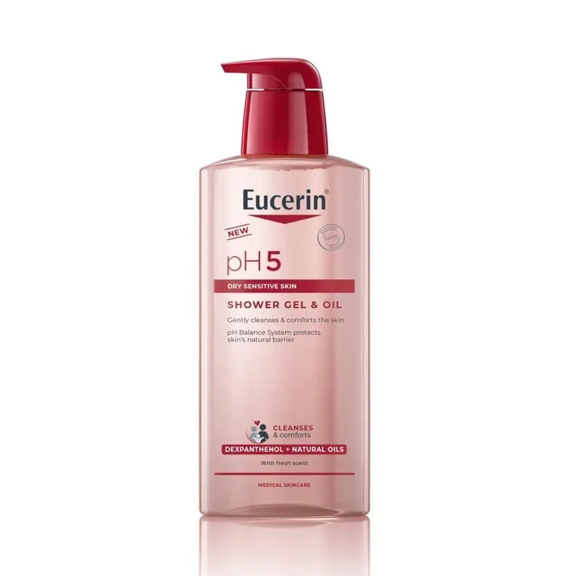Eucerin pH5 oljni gel za prhanje je izdelek primeren za vsakodnevno uporabo, ki zagotovi nežno in učinkovito čiščenje občutljive in suhe kože, hkrati pa jo pomirja. Na koži ne pušča mastnih ostankov. Nežna formula, obogatena z obnovitvenim dekspantenolom in naravnimi olji skupaj s sistemom za pH-ravnovesje, pomaga ohranjati optimalno pH-vrednost kože ter podpira naravno zaščitno bariero kože. Tekstura, ki se mehko speni, je primerna za telo in obraz. Izdelek je primeren za vse družinske člane, tudi za tiste z nagnjenostjo k alergijam.