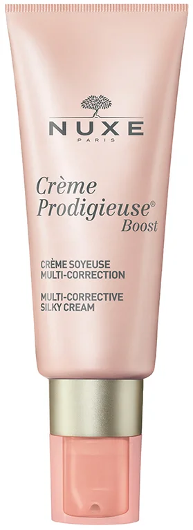 Nuxe creme prodigieuse boost multikorekcijska svilnata krema je luksuzna negovalna krema, ki deluje proti znakim utrujenosti in stresa. Ta izdelek je zasnovan tako, da gladi kožo, zmanjšuje vidnost gub in izboljša tonus kože. Krema ima svilnato teksturo, ki se hitro vpije, koži pa nudi intenzivno vlaženje in zaščito pred škodljivimi vplivi okolja.