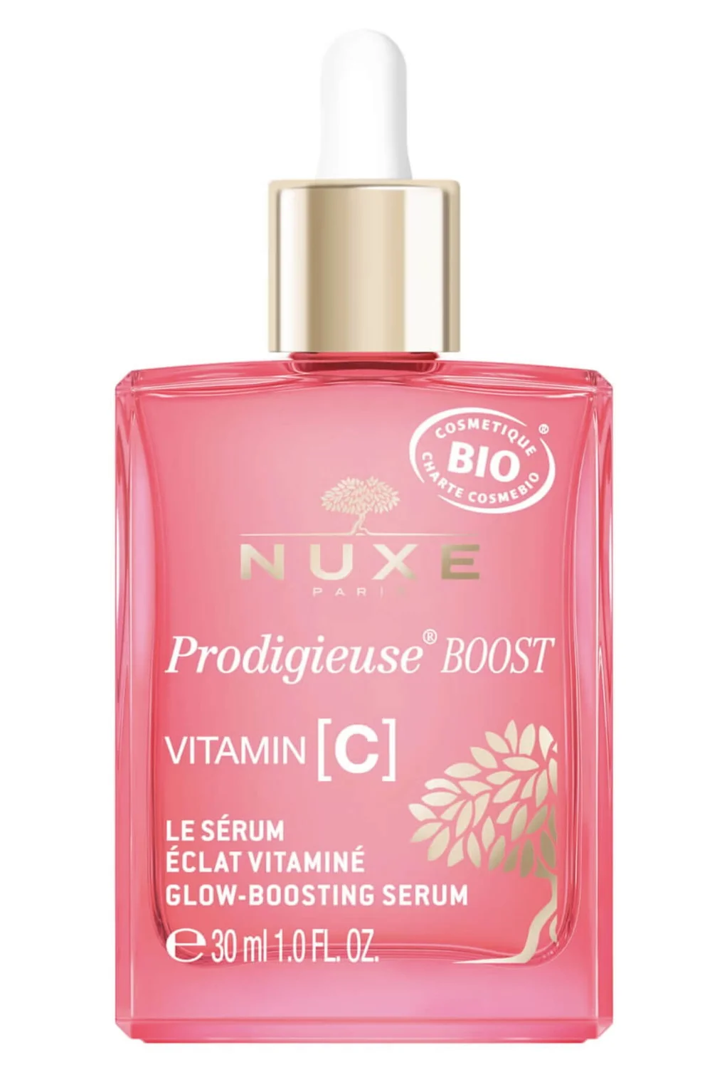 Nuxe Prodigieuse boost serum z vitaminom C za okrepitev sijaja kože je certificiran BIO serum s stabiliziranim vitaminom C v 5-odstotni koncentraciji deluje proti prvim znakom staranja. Serum kožo dodatno zgladi ter ji povrne čvrstost in sijaj. Idealen je za vse vrste kože, saj zagotavlja 8-urno antioksidativno učinkovitost za zmanjšanje učinkov prostih radikalov in zaščito vaše kože. Izjemno lahka tekstura je napolnjena z vonjem, ki temelji na nežnih aromatičnih notah 100 % naravnega izvora. Veganska formula, brez sestavin ali derivatov živalskega izvora.