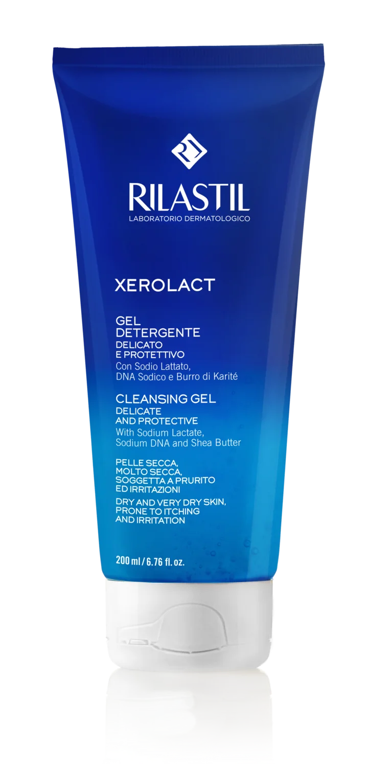 Rilastil Xerolact čistilni gel je nežen peneči gel s fiziološkim pH (5,5), ki nežno čisti kožo brez poškodb njenega hidrolipidnega sloja, intenzivno jo vlaži, neguje in pomirja. Primeren je za obraz in telo, še posebej za suho, zelo suho in občutljivo kožo ter kožo nagnjeno k atopiji in srbežu. Izdelek je primeren za vse družinske člane, od novorojenčkov do odraslih.