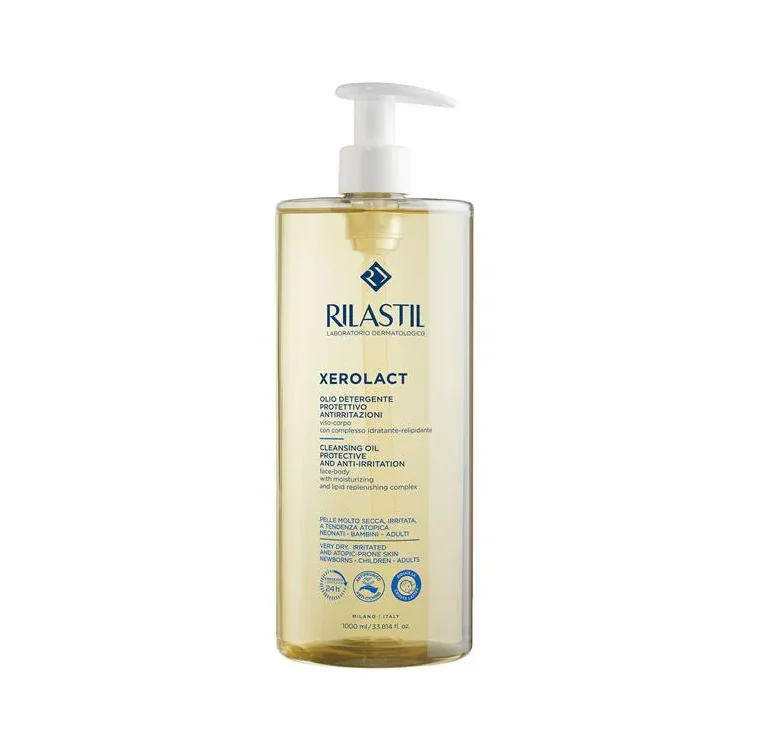 Rilastil Xerolact čistilno olje je namenjeno vsakodnevnemu čiščenju suhe, zelo suhe in atopijskemu dermatitisu nagnjene kože pri dojenčkih, otrocih in odraslih. Z nežnimi čistilnimi sredstvi čisti kožo obraza in telesa, ji zagotavlja 24-urno vlaženje ter obnavlja kožno pregrado z vlažilno-obnovitvenim kompleksom. Pomirja kožo, zmanjšuje srbenje in razdraženost, medtem ko njen pH (5,5) ustreza fiziološkemu pH kože, kar zmanjša tveganje za draženje oči. Oljna tekstura omogoča enostavno raznašanje, je bolj nežna in zmanjša razdraženost kože, ki je posledica praskanja.