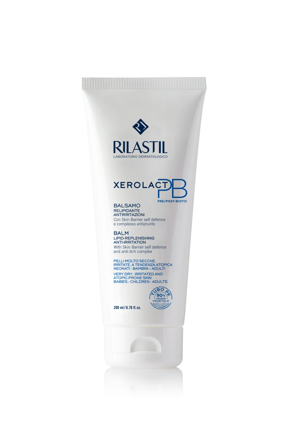 Rilastil Xerolact PB balzam za telo je negovalni izdelek, ki nudi takojšnje olajšanje razdraženi, srbeči koži. Ponuja globinsko vlaženje, obnavlja kožno pregrado in skrbi za ravnovesje kožne mikrobiote. Balzam vlaži, hrani in pomirja kožo, obnavlja zaloge lipidov ter zagotavlja udobje. Primeren za obraz in telo, ter za zelo suho kožo dojenčkov, otrok in odraslih, predvsem za kožo, nagnjeno k atopiji in srbenju.