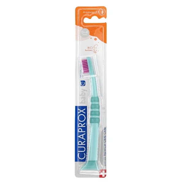 Curaprox CS Baby otroška zobna ščetka je zasnovana za nežno ščetkanje prvega zobka, z edinstvenimi vlakni Curen®, ki preprečujejo poškodbe občutljive otroške ustne sluznice, medtem ko mehka gumijasta zaščita na glavi zagotavlja varno uporabo. Z 4260 izredno mehkih ščetin, ergonomskim nedrsečim držalom in samostoječo zasnovo je primerna tako za otroke kot za starše ter zagotavlja udobno, varno in učinkovito čiščenje.