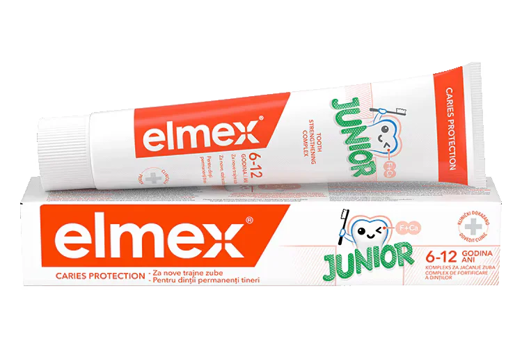 Elmex Junior zobna krema je namenjena otrokom med 6. in 12. letom, ko začnejo izraščati stalni zobje in potrebujejo posebno zaščito. Zasnovana je za vsakodnevno ustno nego ter učinkovito pomaga ščititi zobe pred kariesom. Z redno uporabo prispeva k ohranjanju mineralne vsebnosti zob in krepitvi zobne sklenine v obdobju rasti in razvoja otroških zob.