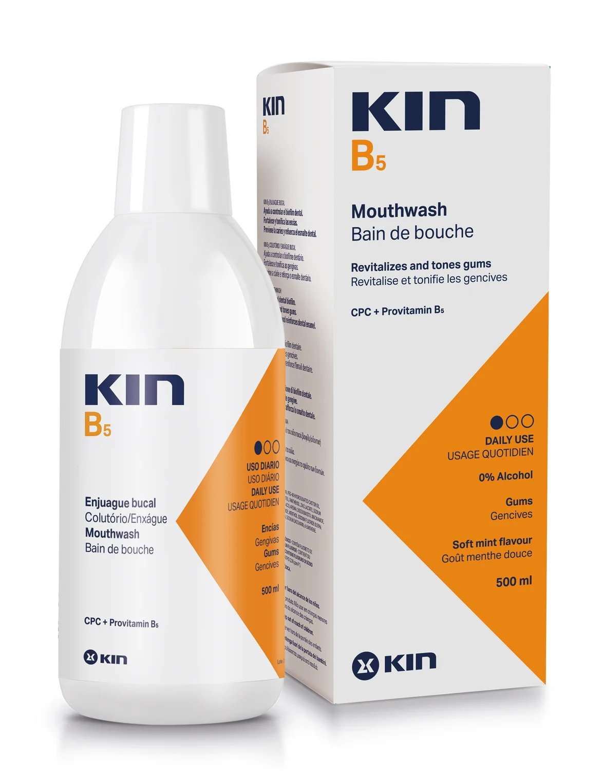 Ustna voda Kin B5 ima klinično dokazano učinkovitost in je namenjena vsakodnevni ustni higieni. Ima okus po mentolu, je brez alkohola, brezbarvna, namenjena uporabi pri odraslih od otrocih od 12. leta dalje.