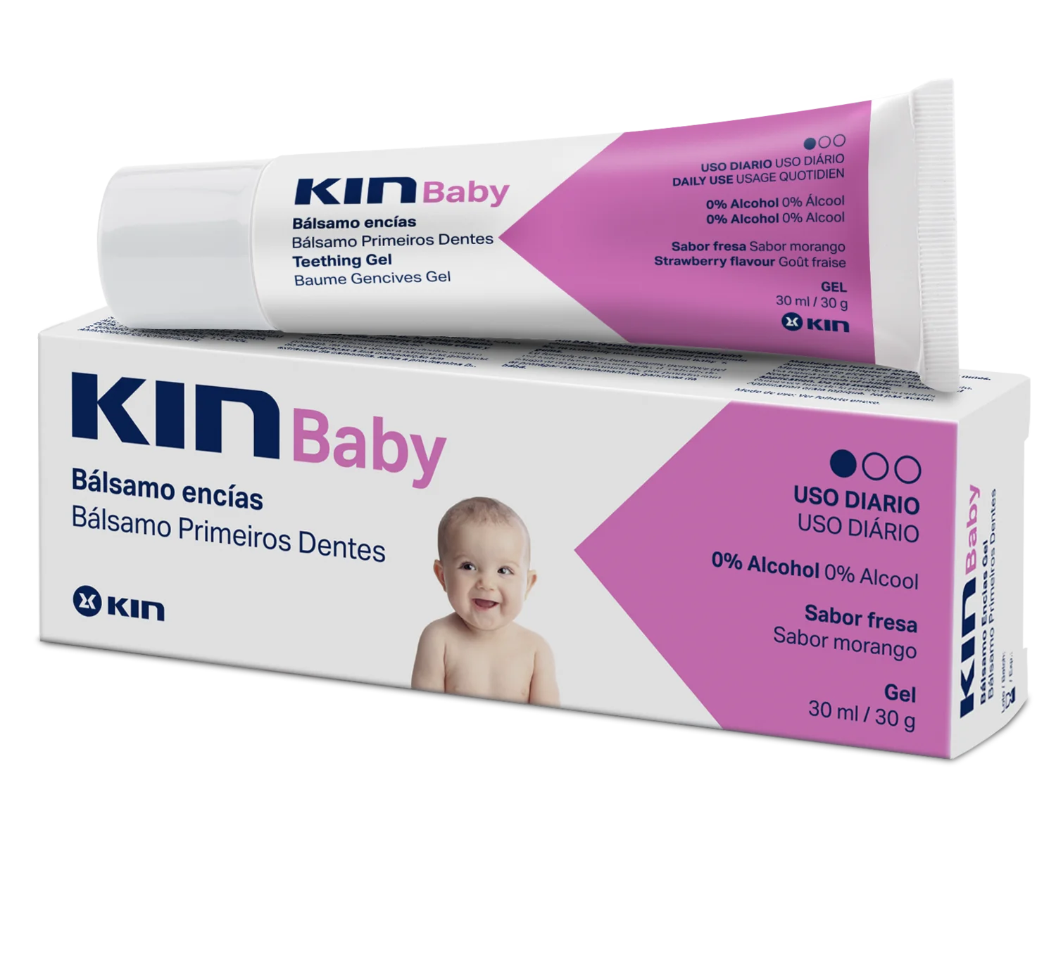 Kin Baby gel je nežen in naraven gel, ki neguje ter ščiti dojenčkove dlesni med izraščanjem prvih zob. Ima prijeten okus jagode, ki zagotavlja občutek svežine. Ne vsebuje alkohola, zato je primeren za občutljivo otroško ustno sluznico.