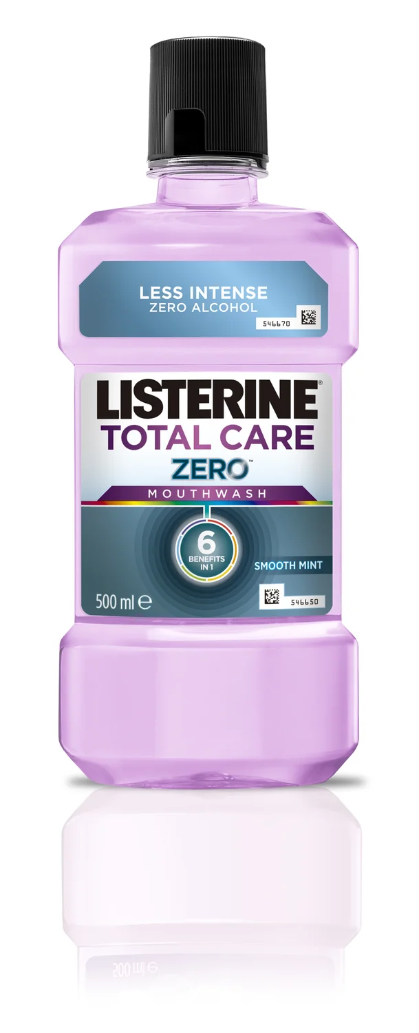 Listerine Total Care Zero je ustna voda brez alkohola z blagim okusom mete, primerna za odrasle in otroke, starejše od 6 let. Namenjena je vsakodnevni ustni higieni ter pomaga krepiti zobe in obnavljati zobno sklenino. Z redno uporabo zmanjšuje zobne obloge, ohranja zdrave dlesni ter vsebuje fluorid za zaščito pred kariesom. Pomaga preprečevati nastanek zobnega kamna, s čimer prispeva k ohranjanju naravno belih zob, hkrati pa zagotavlja dolgotrajen svež dah.
