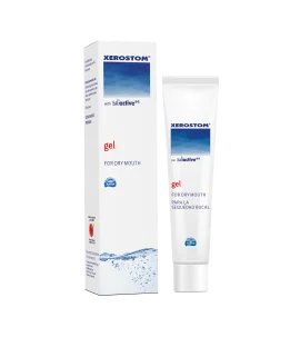 Xerostom gel je vlažilni gel za suha usta, zasnovan kot nadomestek sline pri nezadostnem izločanju sline. Namenjen je intenzivni negi suhih, razdraženih ust ter lajšanju neprijetnih občutkov, kot so pekoč občutek, draženje in oteženo požiranje. Gel ustvari zaščitno bariero pred izsušitvijo, izdatno navlaži ustno sluznico in prispeva k večjemu udobju v ustih. Primeren je tudi za uporabo pod zobnimi protezami, še posebej priporočljiv pa je nanos zvečer, ko je izločanje sline pogosto zmanjšano.