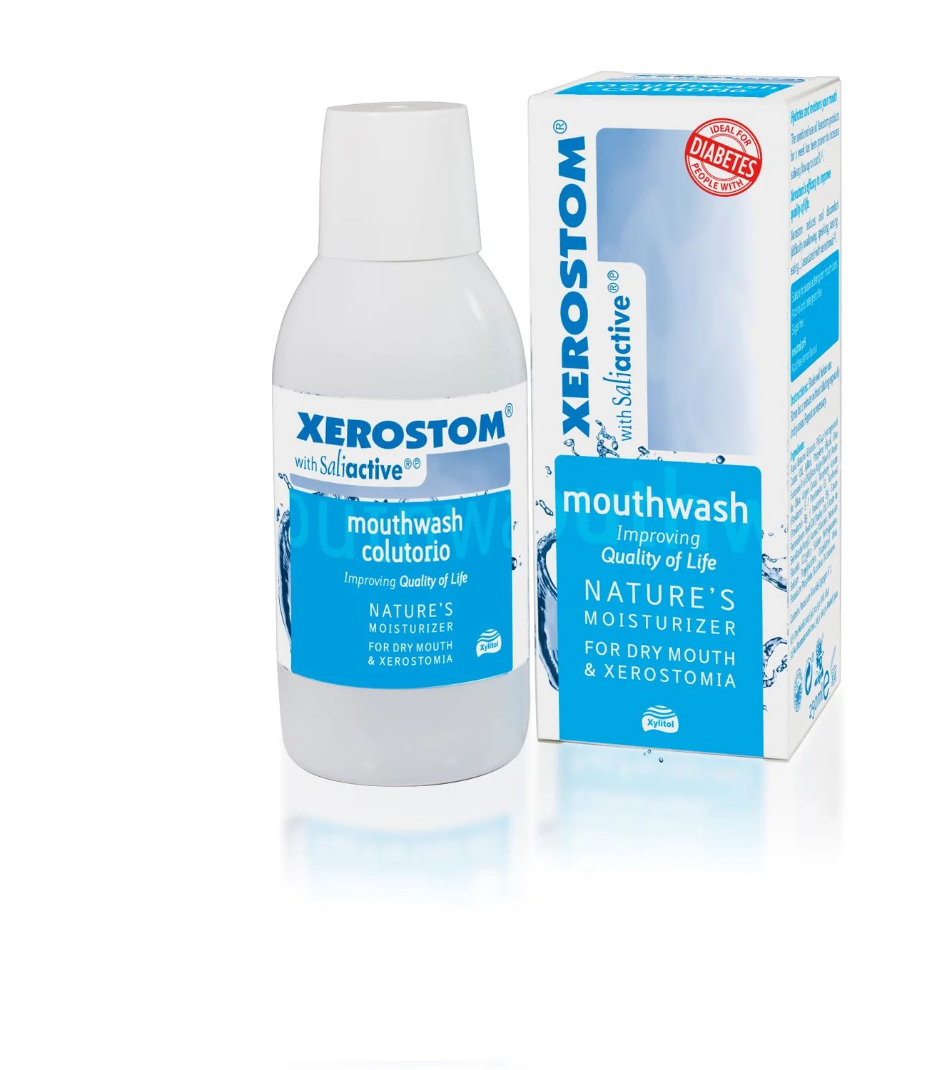 Xerostom ustna voda je izdelek, ki pomaga pri težavah zaradi suhih ust (kserostomije), kot so pekoča in suha sluznica, neugodje v ustih in žrelu. Stimulira naravno izločanje sline in lajša težave z aftami. Vsebuje aktivator sline, ki poveča izločanje sline do 200% v enem tednu, če se uporablja skupaj z drugimi izdelki Xerostom (zobna krema, gel, pršilo, pastile). Ne vsebuje sladkorja, alkohola in detergentov, zato je primerna tudi za diabetike.