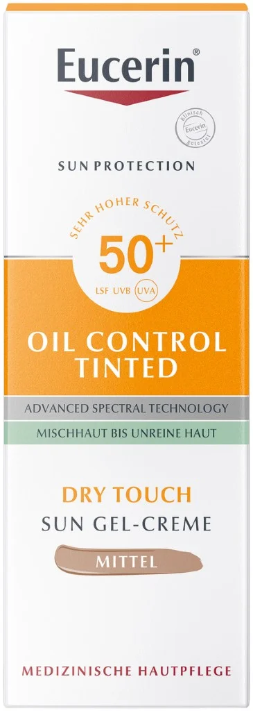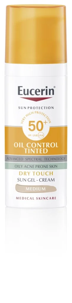 Eucerin Sun Oil Control kremni gel za zaščito pred soncem ZF50+ v odtenku medium se odlikuje z napredno spektralno tehnologijo in obrambo pred HEV-svetlobo za zelo visoko UV-zaščito.