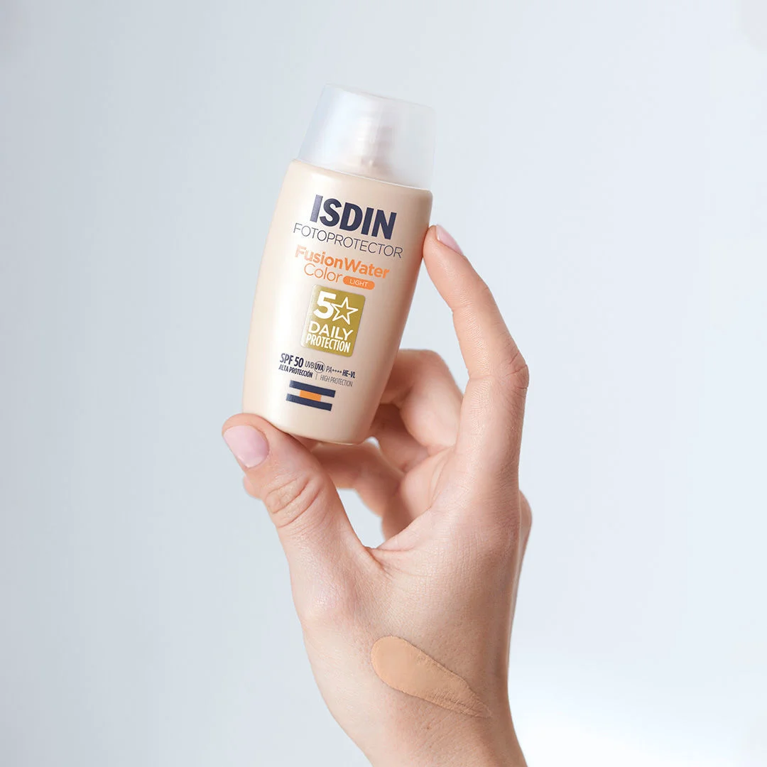 Isdin Fotoprotector Fusion Water Color Light ZF50 je izjemno lahka obarvana krema za obraz z zelo visoko zaščito SPF 50, zasnovana za svetlejše odtenke kože. Obarvana formula naravno prekriva nepravilnosti in poenoti ten kože, medtem ko lahka vodna tekstura zagotavlja nemastno in hitro vpijajočo se uporabo. Primerna je za vse tipe kože, tudi občutljivo in atopijsko ter je primerna za vsakodnevno uporabo, športne aktivnosti in izpostavljanje soncu. Zahvaljujoč izvlečku sredozemske morske alge in hialuronske kisline prispeva k enakomernemu, svežemu in zaščitenemu videzu kože skozi ves dan.
