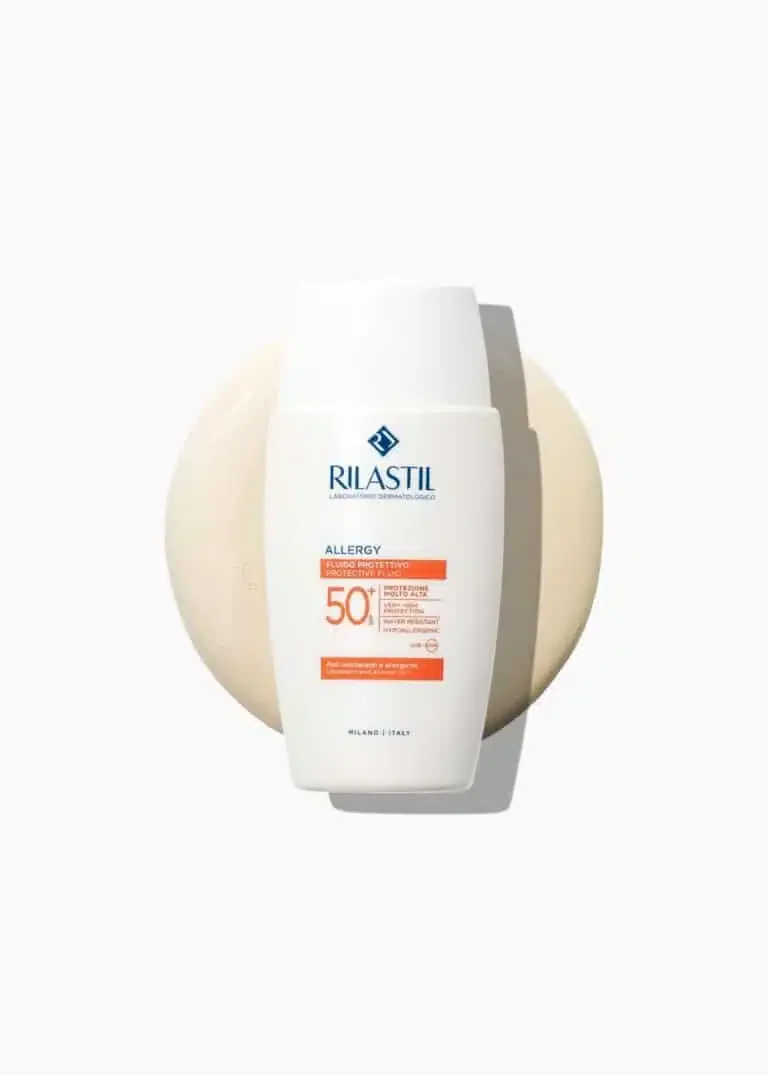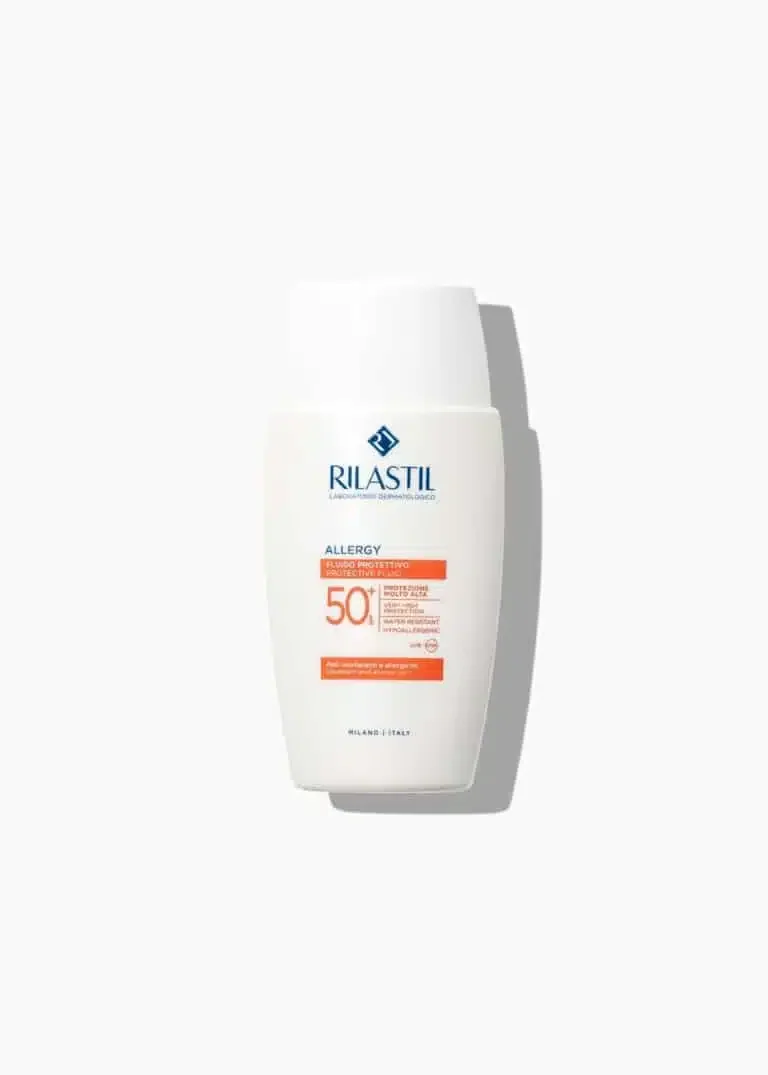 Rilastil Allergy zaščitni fluid je namenjen zaščiti občutljive in reaktivne kože, nagnjene k sončnim izpuščajem in sončnim opeklinam (fotoalergija). Vlažilna, vodoodporna emulzija poleg zaščite pred soncem koži povrne navlaženost in občutek optimalnega udobje. Formula je oftalmološko in klinično testirana ter zasnovana tako, da zmanjša tveganje za draženje oči. Na koži ne pušča belih sledov. Ne vsebuje barvil, dišave in derivatov pšenice in je hipoalergen.