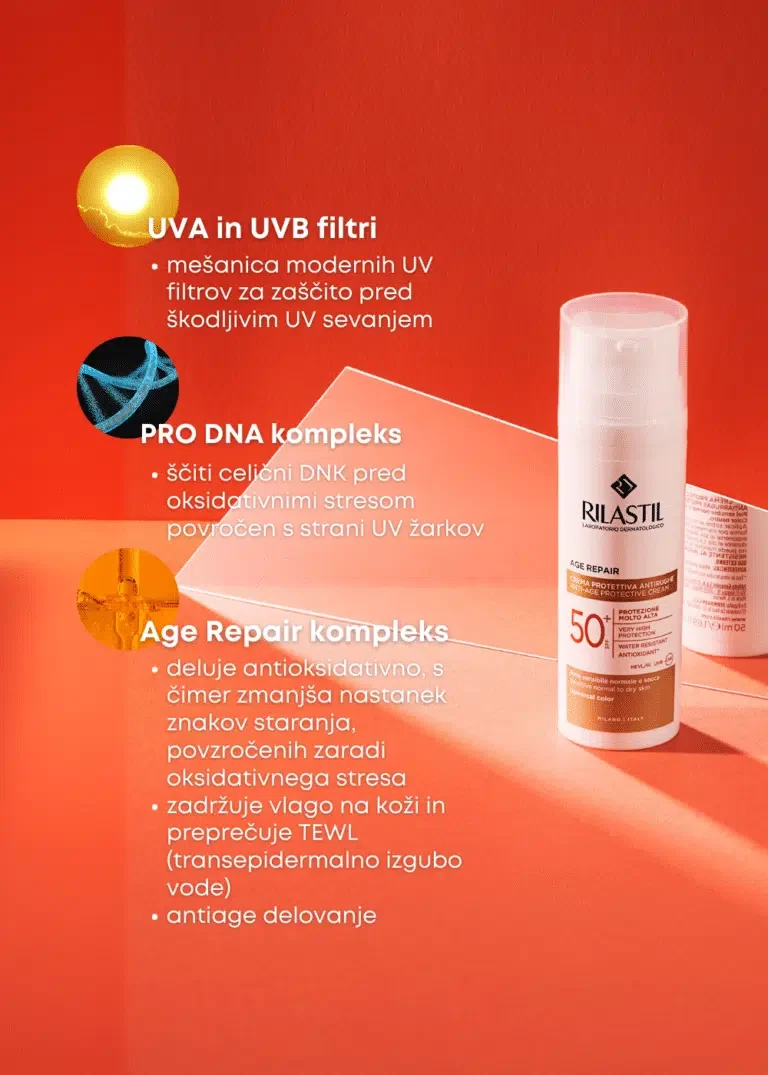 Kako deluje Rilastil Sun System Age Repair obarvana krema ZF50+?