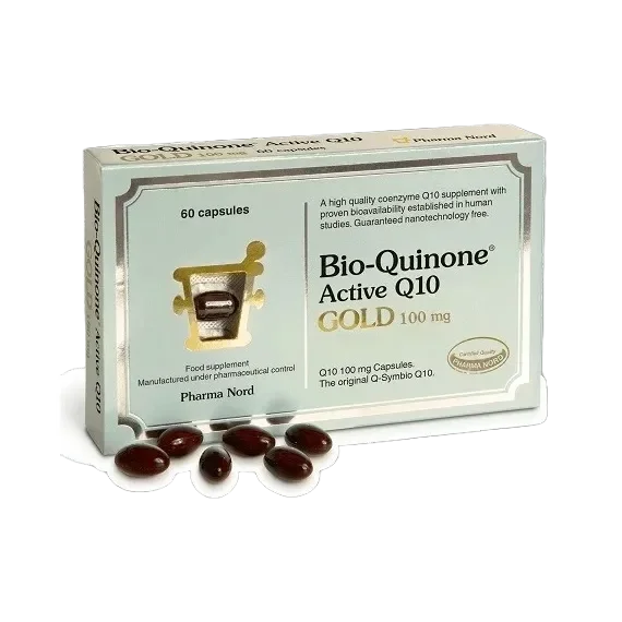 Bio-Qinon Aktivni Q10 z vitaminom B2 Gold vsebuje ubikinon Q10, naravni koencim, ki sodeluje v številnih biokemičnih procesih v telesu, zlasti pri proizvodnji energije v celicah. Ubikinon je v tej formuli raztopljen v rastlinskem olju, kar omogoča visoko biološko razpoložljivost in učinkovito absorpcijo. Kapsule so zasnovane tako, da so zaščitene pred svetlobo, kar preprečuje uničenje aktivnih sestavin, s čimer se podaljša njihova učinkovitost. Vitamin B2 (riboflavin) prispeva k sproščanju energije iz hrane in zmanjšuje utrujenost.