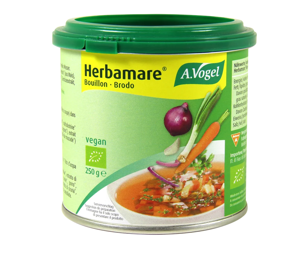 A.Vogel Herbamare jušna osnova z morsko soljo je pripravljena iz kontrolirano biološko pridelane zelenjave, morske soli, rastlinskega olja in začimb. Namenjena je pripravi juh, omak in marinad ter se lahko uporablja tudi za kuhanje testenin in krompirja, kot nadomestilo soli pri pripravi rižot ali kot osnovo za druge jedi. Izdelek je veganski.