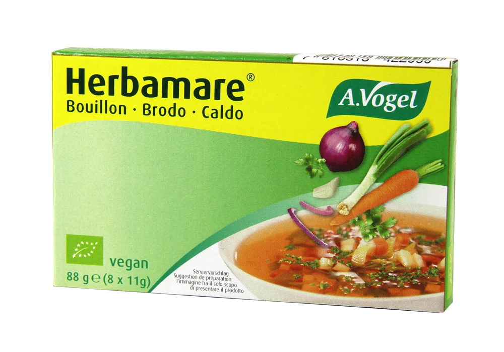 A.Vogel Herbamare jušna osnova z morsko soljo v obliki kocke je pripravljena iz kontrolirano biološko pridelane zelenjave, morske soli, rastlinskega olja in začimb. Namenjena je pripravi juh, omak in marinad ter se lahko uporablja tudi za kuhanje testenin in krompirja, kot nadomestilo soli pri pripravi rižot ali kot osnova za druge jedi. Izdelek je veganski.