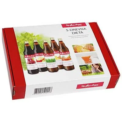 V kovčku je pet različnih sokov s priporočili, kako jih uživati. V času diete zaužijte vsaj 2 do 3 l vode. Vzemite si več časa za počitek. Ob sokovih uživajte nekvašen ržen kruh iz biološko pridelane moke.