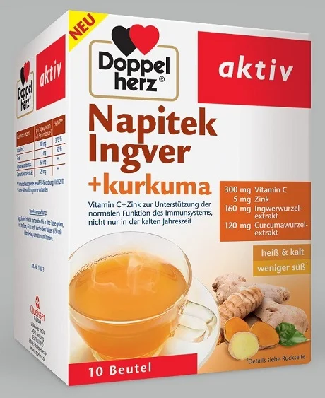 Doppelherz Aktiv Vroči in hladni napitek ingver + kurkuma je prehransko dopolnilo v obliki zrnc, ki se enostavno pripravi kot vroč ali hladen napitek. Namenjeno je vsakodnevni podpori imunskega sistema in zaščiti celic pred oksidativnim stresom.